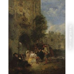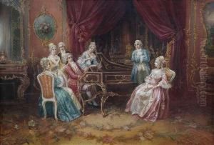 Hofische Gesellschaft Der Rokokozeit Im Musiksalon Um Das Spinett Versammelt