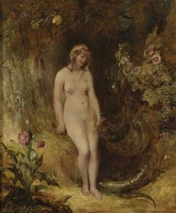 Eva Im Paradies Mit Apfel Und Schlange
