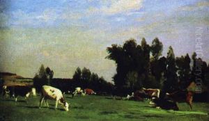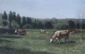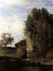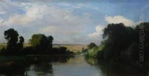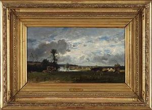 Wolkiger Sommertag Uber Viehherde Am Flussufer