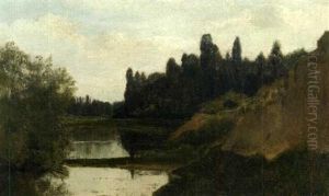 Sommerliche Flusslandschaft Mit Spaziergangern