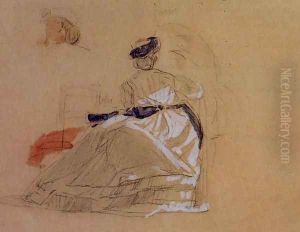 Young Women in Crinolines on the Beach