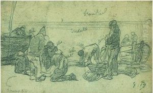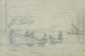 Etretat, Bateaux De Peche Et Pecheurs Sur La Plage