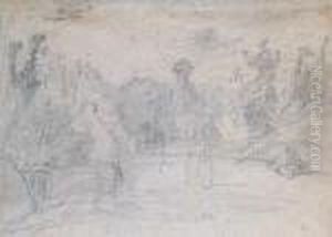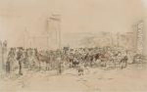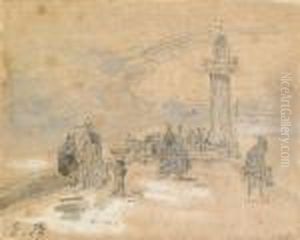 Sur La Jetee Crayon Et Rehauts D'encre Sepia.