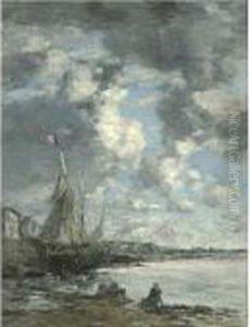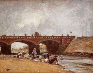 Laveuses Au Bord De La Touques Oil Painting by Eugene Boudin