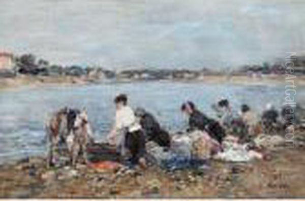 Laveuses Au Bord De La Touques Oil Painting by Eugene Boudin