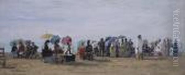 Scene De Plage A Trouville Oil Painting by Eugene Boudin