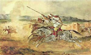 A Turkish Man on a Grey Horse attacking