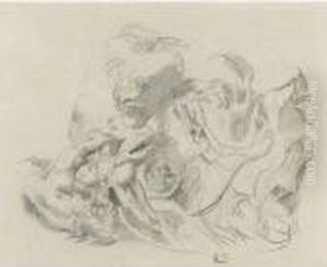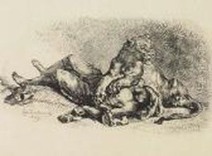 Lion Devorant Un Cheval, Ou Groupe D'animaux