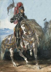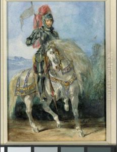 Un Homme En Veste Rouge A Cheval, Tourne Vers L'arriere, Dans Un Paysage