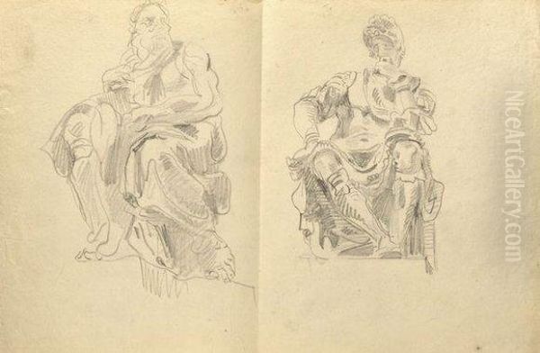 Moise Et Laurent De Medicis D'apres Les Sculptures De Michel -ange