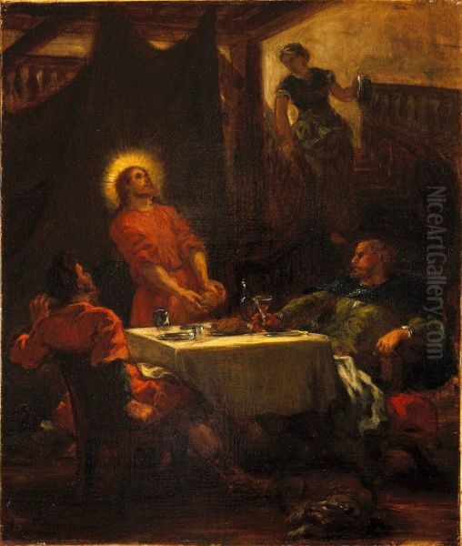 Bring the timeless beauty of Eugene Delacroix's The Disciples at Emmaus, or The Pilgrims at Emmaus (Les disciples d'Emmaus, ou Les pelerins d'Emmaus) into your home with a handmade oil painting reproduction. Carefully recreated on canvas by skilled artists using traditional techniques, this piece captures the delicate brushwork, subtle light, and vibrant color of the original masterpiece. With museum-level quality and rich texture, it brings elegance and artistic depth to any space. Enjoy free shipping and make this masterpiece a part of your personal collection.