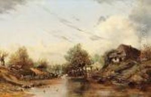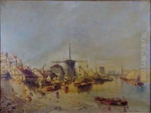 Paisaje Con Molino Y Botes