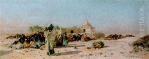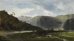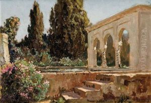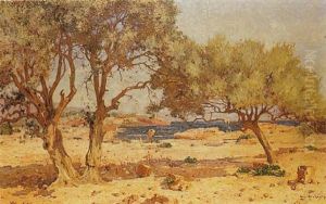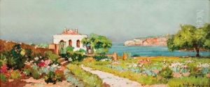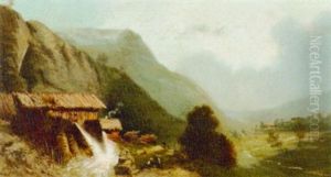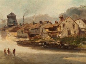 Romantic Landscapes With Fountain And Windmill (+ Another; Pair)