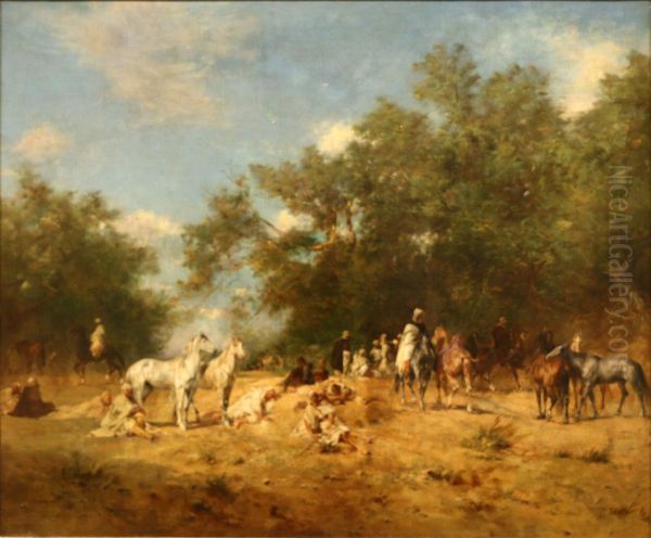 Bring the timeless beauty of Eugene Fromentin's Arab Riders Stop in the Forest into your home with a handmade oil painting reproduction. Carefully recreated on canvas by skilled artists using traditional techniques, this piece captures the delicate brushwork, subtle light, and vibrant color of the original masterpiece. With museum-level quality and rich texture, it brings elegance and artistic depth to any space. Enjoy free shipping and make this masterpiece a part of your personal collection.