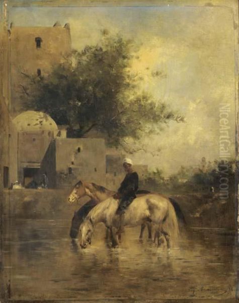 Bring the timeless beauty of Eugene Fromentin's Horses Watering In A River into your home with a handmade oil painting reproduction. Carefully recreated on canvas by skilled artists using traditional techniques, this piece captures the delicate brushwork, subtle light, and vibrant color of the original masterpiece. With museum-level quality and rich texture, it brings elegance and artistic depth to any space. Enjoy free shipping and make this masterpiece a part of your personal collection.