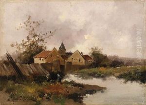 A Pastoral Landscape With A Peasant Woman By A Stream
