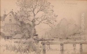 Paysage A La Jeune Femme Crayon Noir