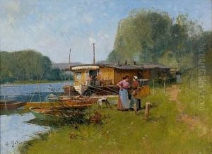 Lavandieres Devant Un Bateau-lavoir