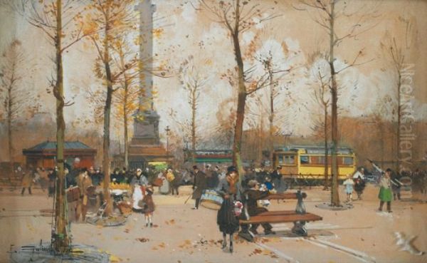 Place De La Bastille Oil Painting by Eugene Galien-Laloue