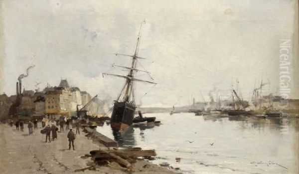 Scene De Port En Normandie Oil Painting by Eugene Galien-Laloue