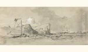 A View Of A Fortification Along A Coast