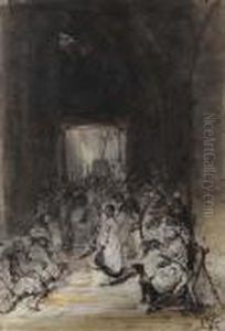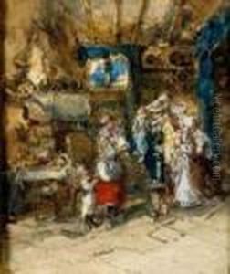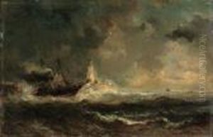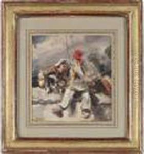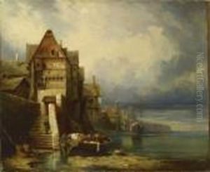 Figures In A Rocky Shore, The Prow Of A Ship In The Foreground