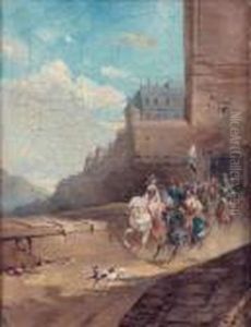 Scene De Tournoi Au Moyen-ge Aquarelle Gouachee Sur Traits De Plume Et Encre Brune