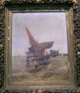 Figures In A Rocky Shore, The Prow Of A Ship In Theforeground