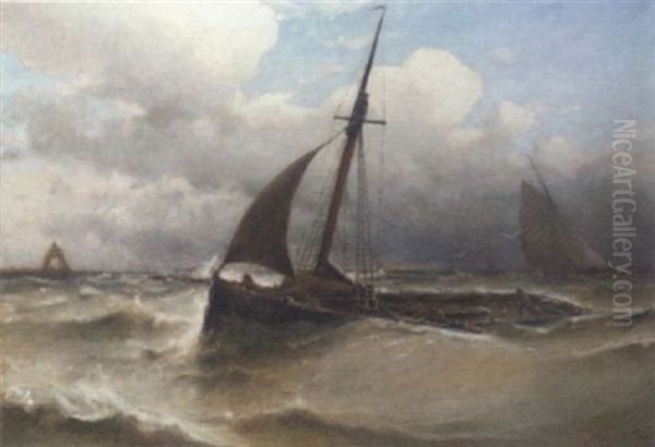 Ostende Fishing Boats Running Into Their Homeport In A Squall