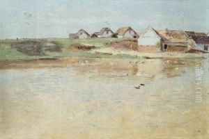 Jettel's mature style is characterized by a nuanced understanding of light and atmosphere, with a particular emphasis on the tranquil moods of nature. He often painted river scenes, marshlands, and rural landscapes with a fine sense of detail and a subdued color palette, capturing the serene and harmonious aspects of the natural world.