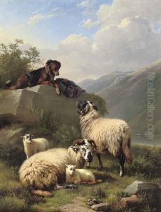 A Sheep And Two Lambs Resting In A Summer Landscape