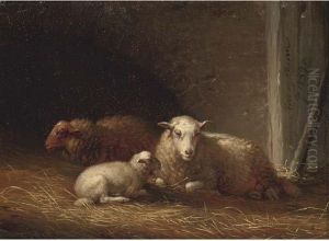 Crossing The River; Bulls And Sheep Resting In A Landscape, Two