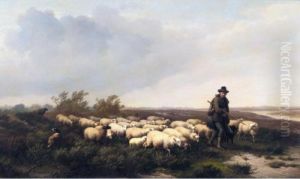 A Wooded Landscape With A Shepherd Resting With His Flock