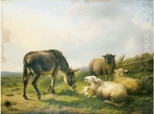 A Bull And Sheep In A Landscape