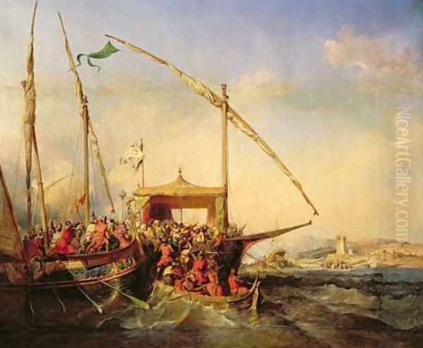 Bring the timeless beauty of Eugene Lepoittevin's Naval Battle of Imbre in 1346 into your home with a handmade oil painting reproduction. Carefully recreated on canvas by skilled artists using traditional techniques, this piece captures the delicate brushwork, subtle light, and vibrant color of the original masterpiece. With museum-level quality and rich texture, it brings elegance and artistic depth to any space. Enjoy free shipping and make this masterpiece a part of your personal collection.