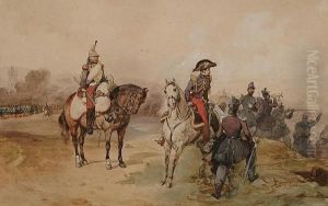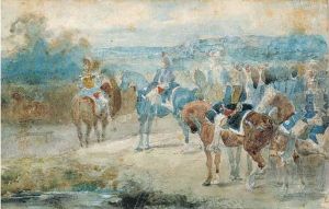 Un Officier Hussard A Cheval, Pointant Vers La Droite; Et Un Dragona Cheval, Tourne Vers La Gauche