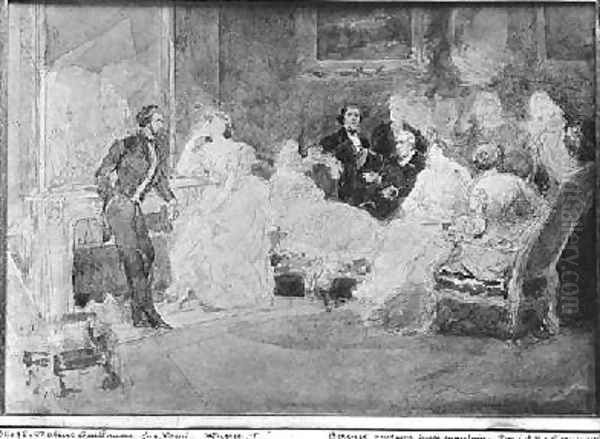 Alfred de Musset 1810-57 Eugene Delacroix 1798-1863 and Pierre Antoine Berryer 1790-1868 at a society evening