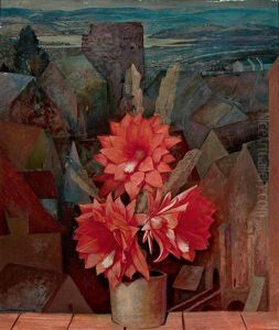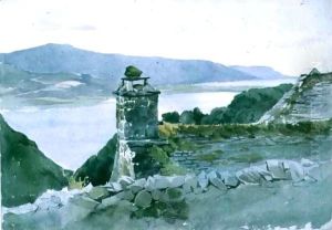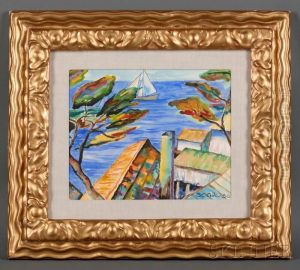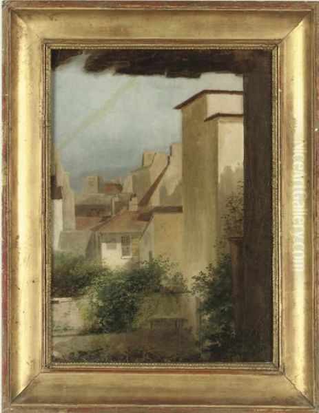 Study Of A Courtyard Garden With Rooftops Beyond