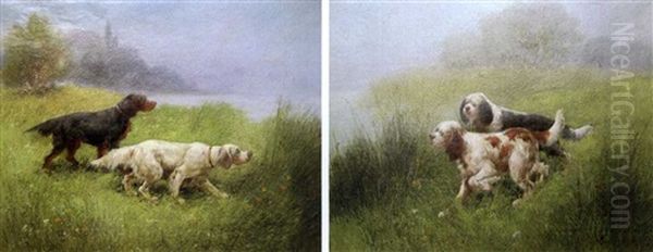 Chiens De Chasse A L'arret (+ Another, Similar; Pair) Oil Painting by Eugene Petit