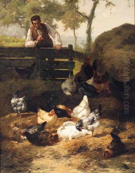Bring the timeless beauty of Eugene Remy Maes's Chickens Feeding In A Farmyard into your home with a handmade oil painting reproduction. Carefully recreated on canvas by skilled artists using traditional techniques, this piece captures the delicate brushwork, subtle light, and vibrant color of the original masterpiece. With museum-level quality and rich texture, it brings elegance and artistic depth to any space. Enjoy free shipping and make this masterpiece a part of your personal collection.