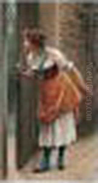 Bring the timeless beauty of Eugene de Blaas's Die Lauscherin (the Eavesdropper) into your home with a handmade oil painting reproduction. Carefully recreated on canvas by skilled artists using traditional techniques, this piece captures the delicate brushwork, subtle light, and vibrant color of the original masterpiece. With museum-level quality and rich texture, it brings elegance and artistic depth to any space. Enjoy free shipping and make this masterpiece a part of your personal collection.