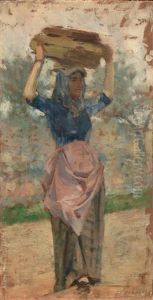 Wooded Landscape With Woman Carrying A Jar