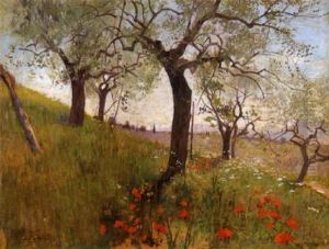 Paesaggio Con Alberi E Papaveri