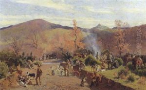 Sosta Dei Cacciatori Per Far Abbeverare I Cavalli