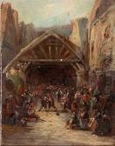 Figures And Carriage At A City Wall