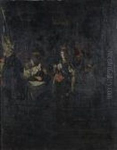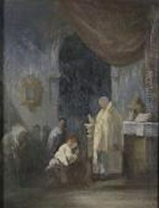 A Church Interior With A Figure Preaching
