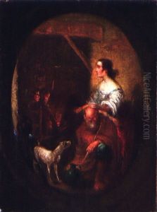 Ritratto Di Nobildonna In Piedi, A Figura Intera, Con Abito Rosa E Ventaglio In Mano