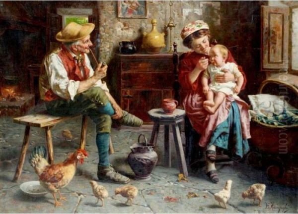 Bring the timeless beauty of Eugenio Zampighi's Feeding The Baby into your home with a handmade oil painting reproduction. Carefully recreated on canvas by skilled artists using traditional techniques, this piece captures the delicate brushwork, subtle light, and vibrant color of the original masterpiece. With museum-level quality and rich texture, it brings elegance and artistic depth to any space. Enjoy free shipping and make this masterpiece a part of your personal collection.