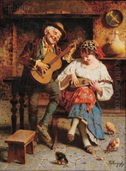 Bring the timeless beauty of Eugenio Zampighi's The Duet into your home with a handmade oil painting reproduction. Carefully recreated on canvas by skilled artists using traditional techniques, this piece captures the delicate brushwork, subtle light, and vibrant color of the original masterpiece. With museum-level quality and rich texture, it brings elegance and artistic depth to any space. Enjoy free shipping and make this masterpiece a part of your personal collection.