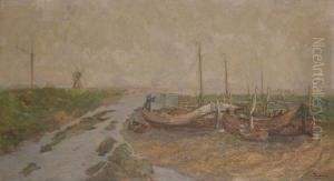 A River Estuary With Moored Fishing Pinks And Townsfolk On Thequay